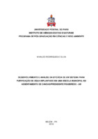 DESENVOLVIMENTO E ANÁLISE DA EFICÁCIA DE UM SISTEMA PARA PURIFICAÇÃO DE ÁGUA IMPLANTADO EM UMA ESCOLA MUNICIPAL NO ASSENTAMENTO DE CANOAS/PRESIDENTE FIGUEIREDO - AM Segundo a Organização das Nações Unidas (ONU), água contaminada mata mais do que guerra. Além disso, a falta de tratamento da água e saneamento básico leva à morte de milhares de pessoas. Ela tem influência direta na qualidade de vida, saúde e desenvolvimento humano. Especificamente no Brasil, principalmente na Região Amazônica, devido à vasta dimensão e falta de infraestrutura básica, essa situação se agrava ainda mais. As opções de tratamento nessas regiões são escassas, e as tecnologias sociais estão sendo desenvolvida para suprir à ausência de serviços essenciais a população. O objetivo deste trabalho é desenvolver um sistema de tratamento de água para consumo humano no Assentamento Rural de Canoas, a 38 quilômetros de Presidente Figueiredo - Amazonas. Foram realizadas análises bacteriológicas em amostras de águas dos poços, antes e depois da implantação do sistema automático proposto nessa dissertação. Assim, as fontes de água analisadas foram consideradas inadequadas para consumo humano sem tratamento prévio do sistema automático. Com o uso do sistema as análises realizadas pela Vigilância Sanitária do Município de Presidente Figueiredo mostraram que os resultados não apresentavam mais índices de contaminação da água, ou seja, foram eliminados os agentes patogênicos da água, tornando adequada para o consumo humano.