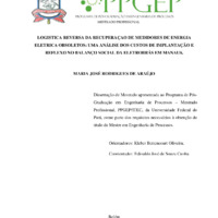 O descarte dos produtos pós consumo deixa de ser lixo e passa a oferecer enormes oportunidades de negócios sendo a cadeia de logística reversa um mecanismo potencial de dá destinação certa aos resíduos, quebrando o mito de alto custo operacional para a prática da logística reversa, ao invés disso agrega evidentes vantagens de retorno positivo sobre os aspectos sociais, ambientais e econômico. E para isso o presente estudo trata da logística reversa no processo de recuperação de medidores de energia elétrica obsoletos, busca associar o custo da implantação do projeto Energia + da Eletrobrás em Manaus, o adequado acondicionamento de materiais e equipamentos necessários com a adoção de critérios construtivos às condições ambientais, aos impactos socioambientais decorrentes da logística reversa implantada e o reflexo no balanço social da empresa. A implantação do sistema de logística reversa é mais um elemento rumo ao desenvolvimento sustentável por possibilitar a otimização do consumo de matérias-primas e o seu apropriado descarte em consonância a lei nacional de resíduos sólidos. Foi realizado pesquisa bibliográfica e documental por meio de livros, periódicos, artigos e legislação inerente aos assuntos abordados e os relatórios de gestão, como fundamento sobre logística reversa, reciclagem, sustentabilidade, custos e gestão ambiental. O método aplicado para identificar os custos de recuperação do produto, a destinação dos medidores e os reflexos para a empresa concessionária de energia foi pela análise dos informes de progresso executivo mensais da implantação do projeto: Logística e Manufatura Reversa, disponibilizado pelo Escritório de Gestão de Projetos da concessionária de energia no estado do Amazonas no período de 2015-2016 e o Relatório de Avaliação Socioambiental -Sumário de Executivo e Plano de Gestão Ambiental - maio de 2010 da Eletrobrás. Mediante o estudo realizado foi possível consolidar o entendimento de que através da logística reversa é possível desenvolver a sustentabilidade como vantagens competitiva, estabelecendo perspectiva estratégica e operacional, satisfazendo os stakeholders, e atenuada redução dos impactos negativos ao meio ambiente e potencializa os impactos positivos, pela geração de emprego e melhoria da qualidade de vida à sociedade em geral, por meio da reciclagem. Pode-se concluir que o custo da implantação do projeto de logística e manufatura reversa, foi relativamente baixo em comparação as receitas obtidas pelas vendas dos medidores obsoletos e investidos em projetos sociais, agregando valores a imagem da empresa face a sustentabilidade ambiental do projeto de logística reversa.