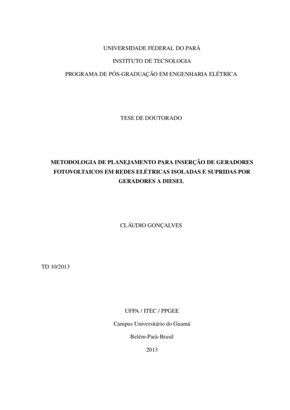 METODOLOGIA DE PLANEJAMENTO PARA INSERÇÃO DE GERADORES FOTOVOLTAICOS EM REDES ELÉTRICAS ISOLADAS E SUPRIDAS POR GERADORES A DIESEL