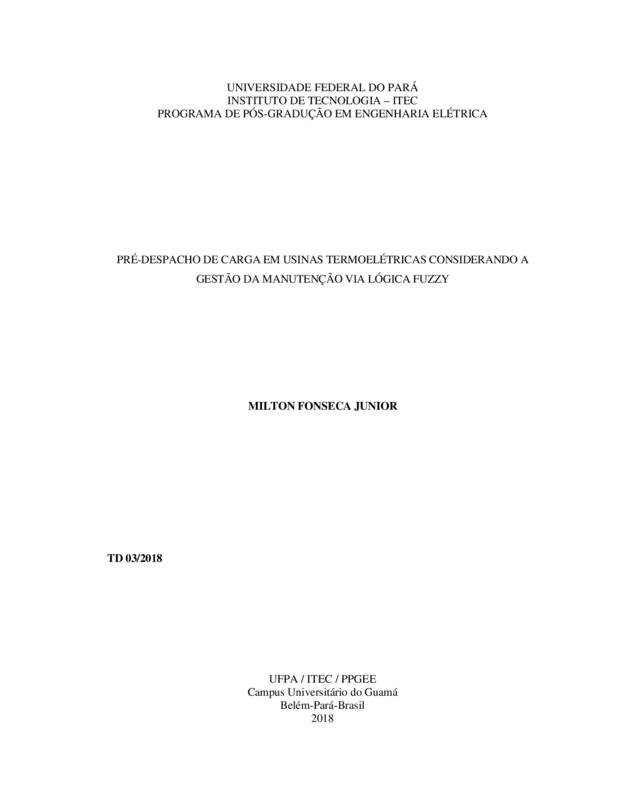 PRÉ-DESPACHO DE CARGA EM USINAS TERMOELÉTRICAS CONSIDERANDO A GESTÃO DA MANUTENÇÃO VIA LÓGICA FUZZY