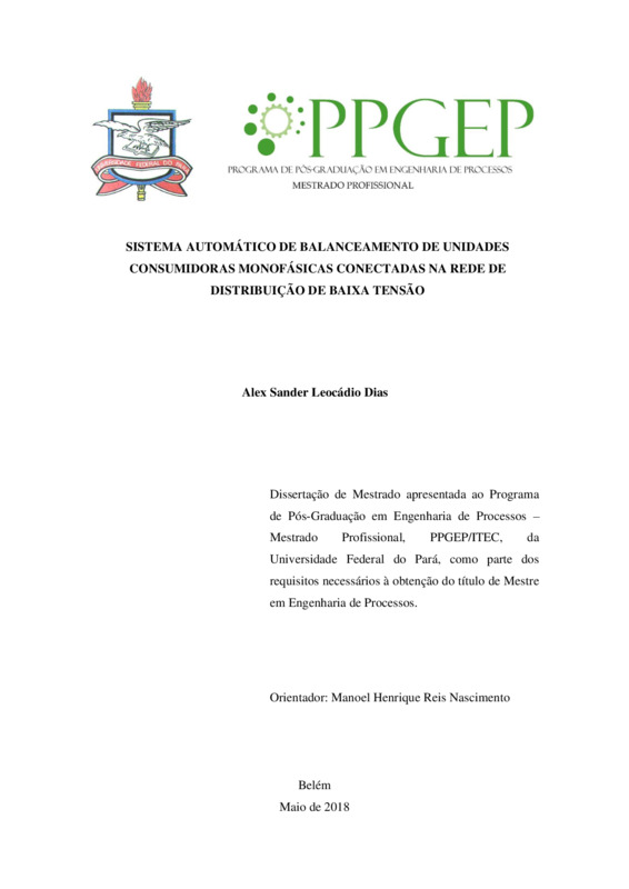 SISTEMA AUTOMÁTICO DE BALANCEAMENTO DE UNIDADES CONSUMIDORAS MONOFÁSICAS CONECTADAS NA REDE DE DISTRIBUIÇÃO DE BAIXA TENSÃO