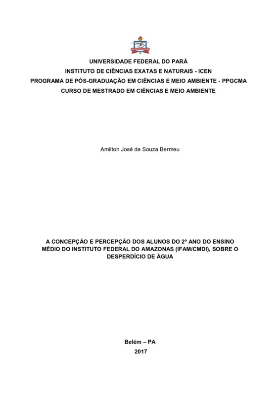 A CONCEPÇÃO E PERCEPÇÃO DOS ALUNOS DO 2º ANO DO ENSINO MÉDIO DO INSTITUTO FEDERAL DO AMAZONAS (IFAM/CMDI), SOBRE O DESPERDÍCIO DE ÁGUA