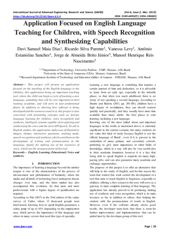Keywords— English; Learning; Educational; Voice and synthesis.