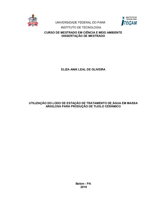 UTILIZAÇÃO DO LODO DE ESTAÇÃO DE TRATAMENTO DE ÁGUA EM MASSA ARGILOSA PARA PRODUÇÃO DE TIJOLO CERÂMICO