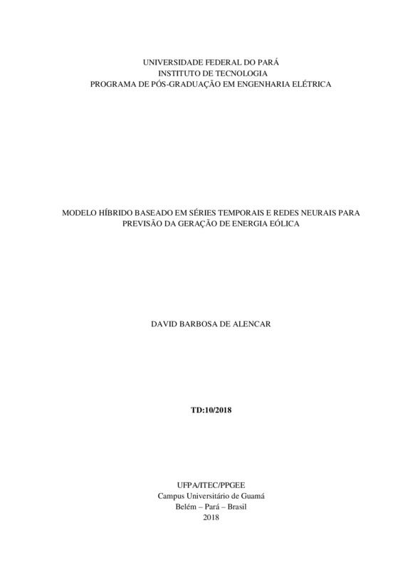 MODELO HÍBRIDO BASEADO EM SÉRIES TEMPORAIS E REDES NEURAIS PARA PREVISÃO DA GERAÇÃO DE ENERGIA EÓLICA