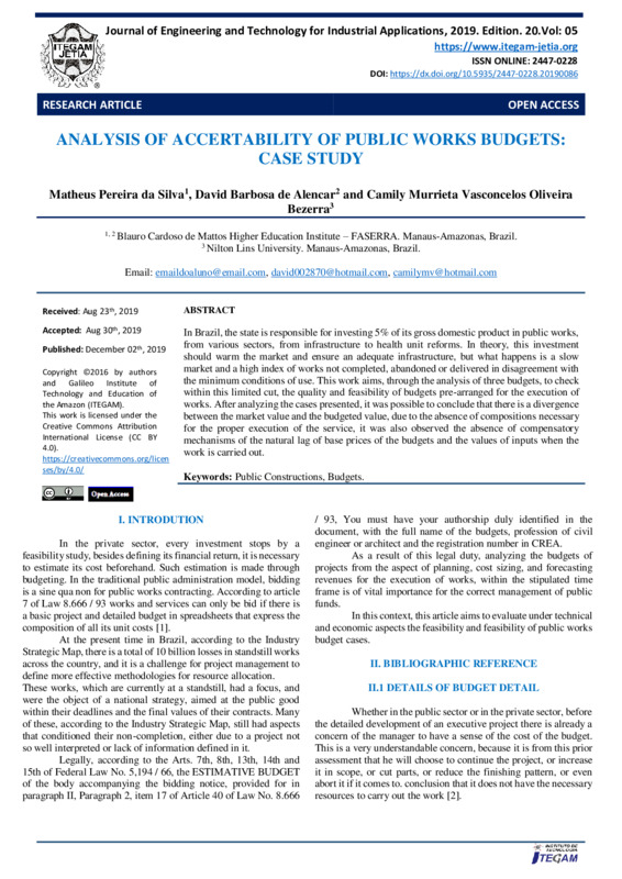 Keywords: Public Constructions, Budgets.