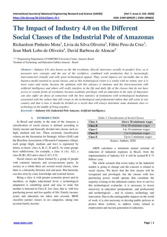 The Impact of Industry 4.0 on the Different Social Classes of the Industrial Pole of Amazonas