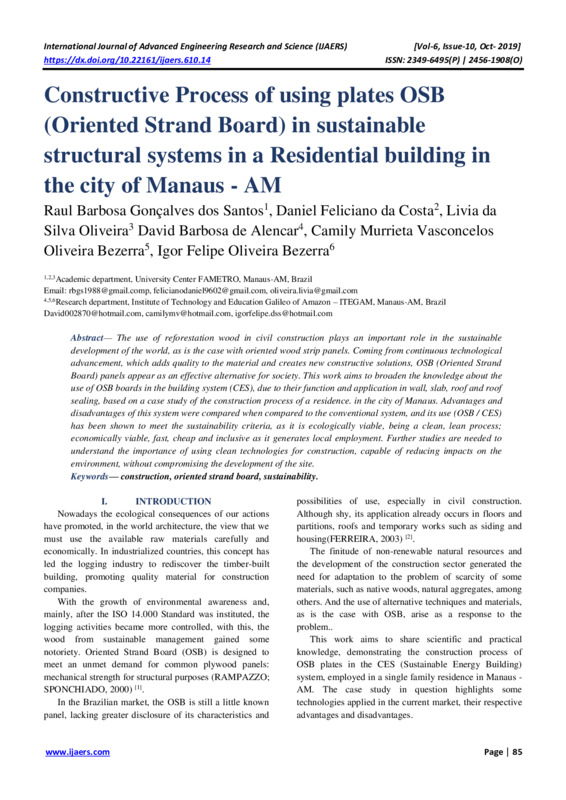 Constructive Process of using plates OSB (Oriented Strand Board) in sustainable structural systems in a Residential building in the city of Manaus - AM