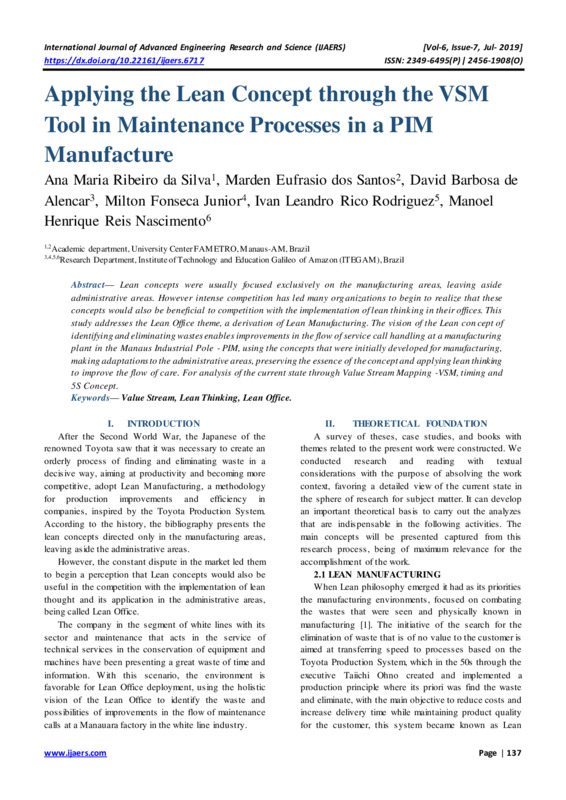 study addresses the Lean Office theme, a derivation of Lean Manufacturing. The vision of the Lean con cept of