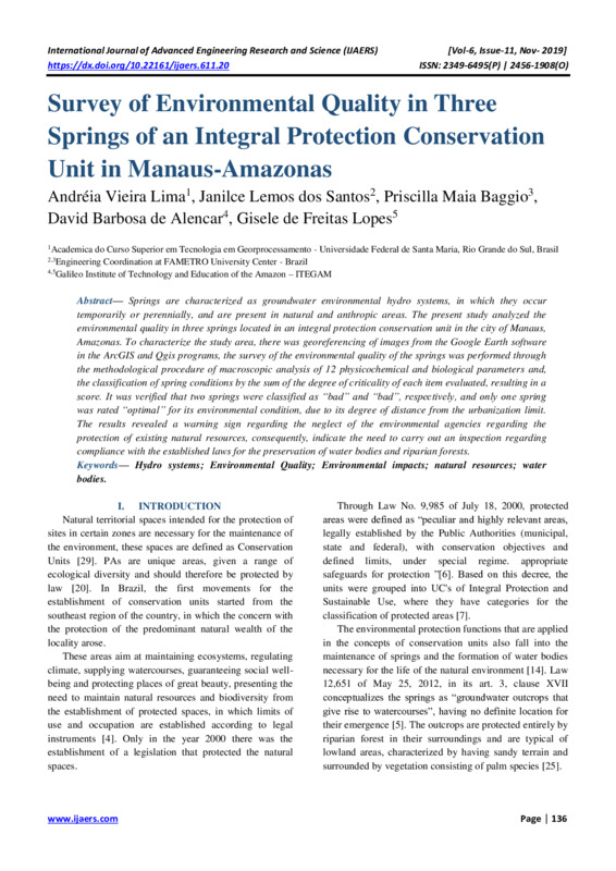 Survey of Environmental Quality in Three Springs of an Integral Protection Conservation Unit in Manaus-Amazonas