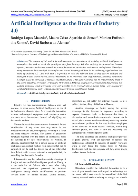 Keywords— Artificial Intelligence; Industry 4.0; Revolution Industrial.