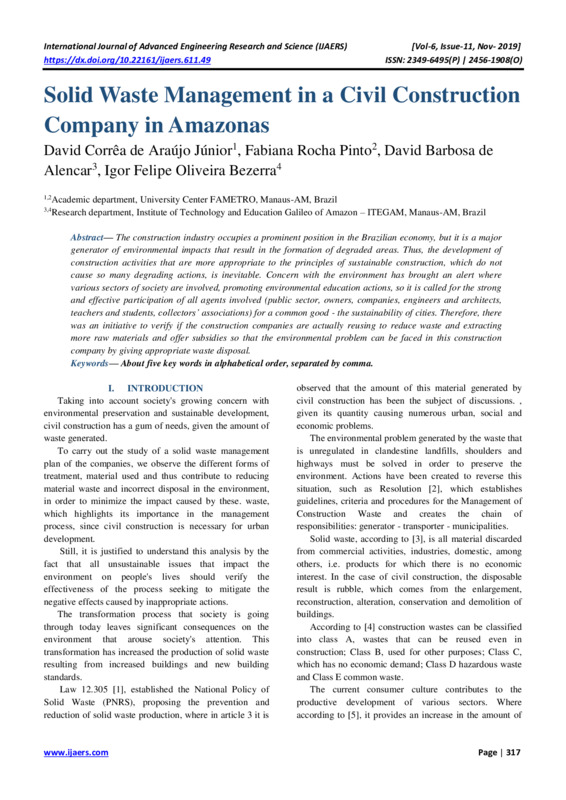 Solid Waste Management in a Civil Construction Company in Amazonas
