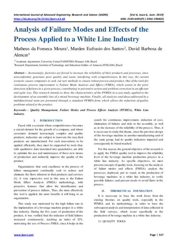Analysis of Failure Modes and Effects of the Process Applied to a White Line Industry