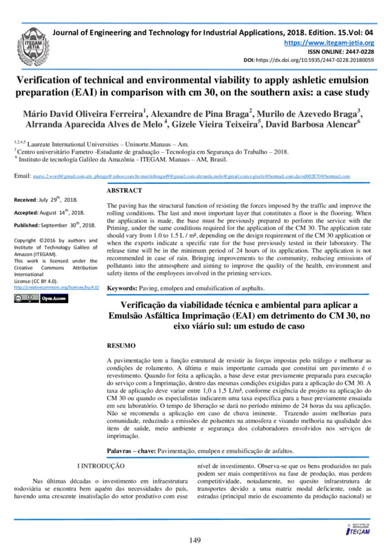 Verification of technical and environmental viability to apply ashletic emulsion preparation (EAI) in comparison with cm 30, on the southern axis: a case study