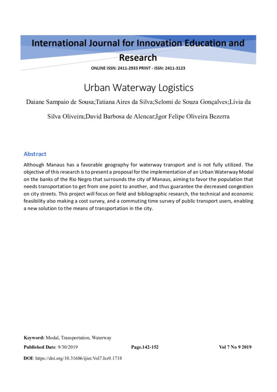 objective of this research is to present a proposal for the implementation of an Urban Waterway Modal