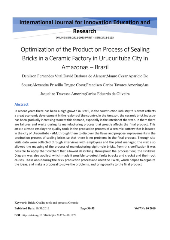 Optimization of the Production Process of Sealing Bricks in a Ceramic Factory in Urucurituba City in Amazonas – Brazil