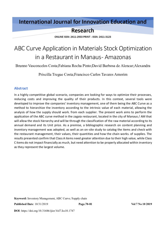 ABC Curve Application in Materials Stock Optimization in a Restaurant in Manaus - Amazonas