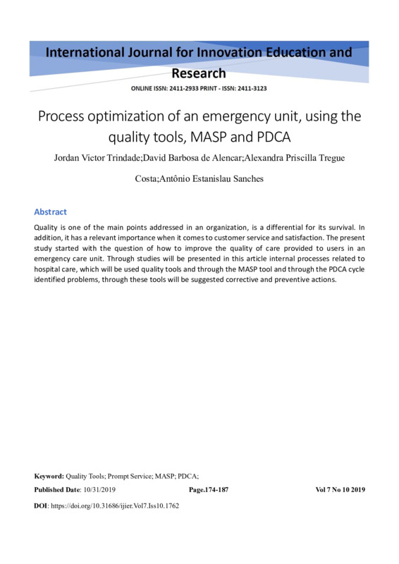 Process optimization of an emergency unit, using the quality tools, MASP and PDCA