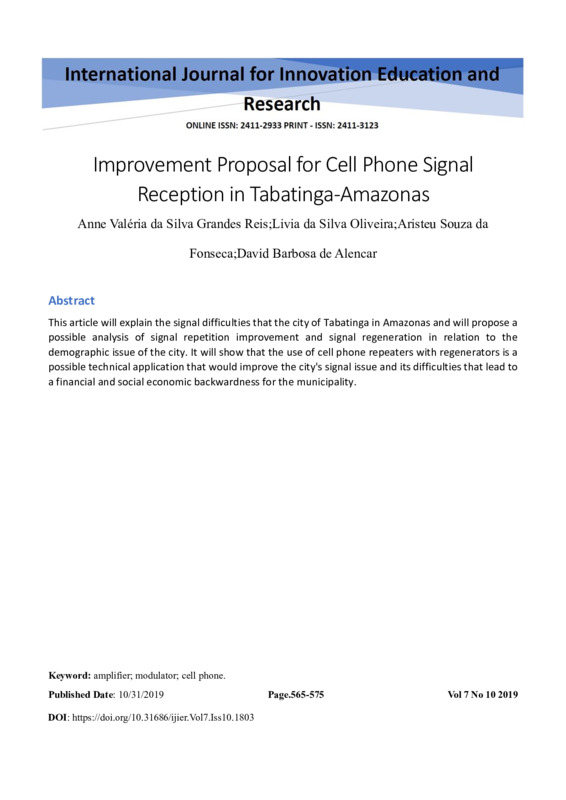 This article will explain the signal difficulties that the city of Tabatinga in Amazonas and will propose a