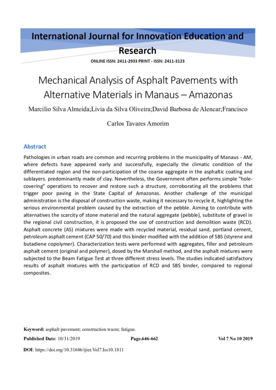 Mechanical Analysis of Asphalt Pavements with Alternative Materials in Manaus – Amazonas
