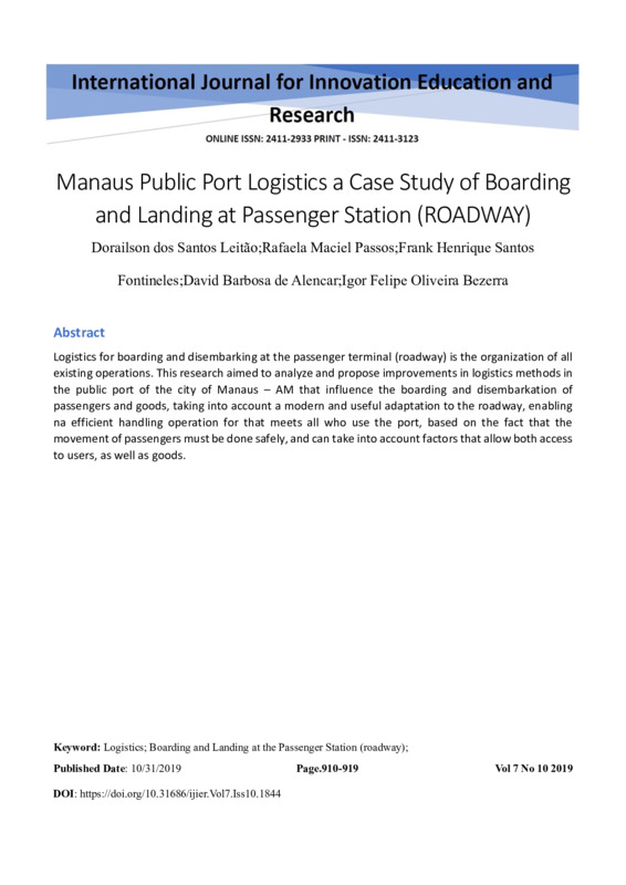 Manaus Public Port Logistics a Case Study of Boarding and Landing at Passenger Station (ROADWAY)