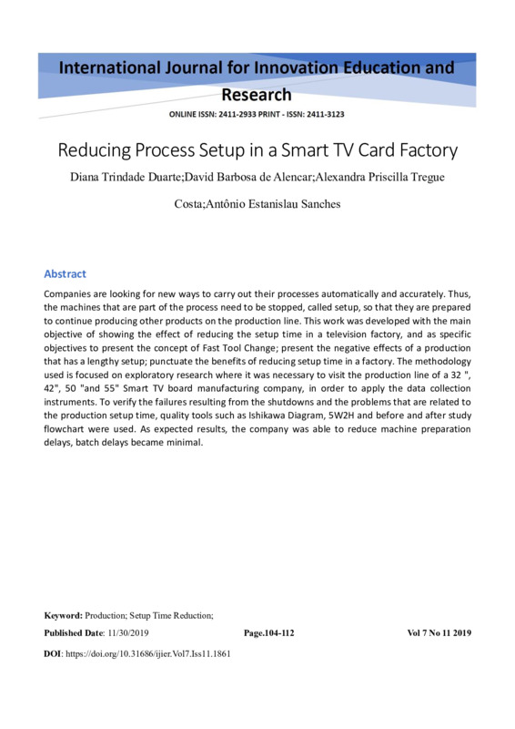 objective of showing the effect of reducing the setup time in a television factory, and as specific
