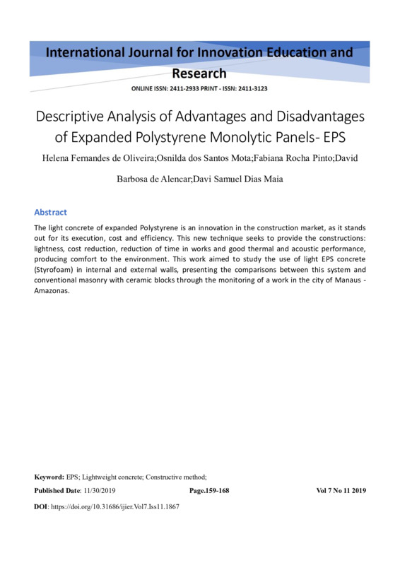 Descriptive Analysis of Advantages and Disadvantages of Expanded Polystyrene Monolytic Panels - EPS