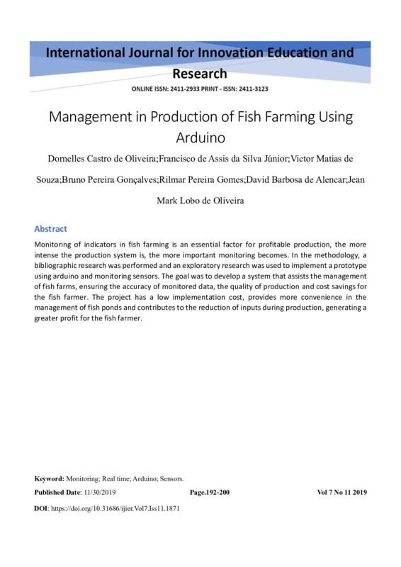using arduino and monitoring sensors. The goal was to develop a system that assists the management