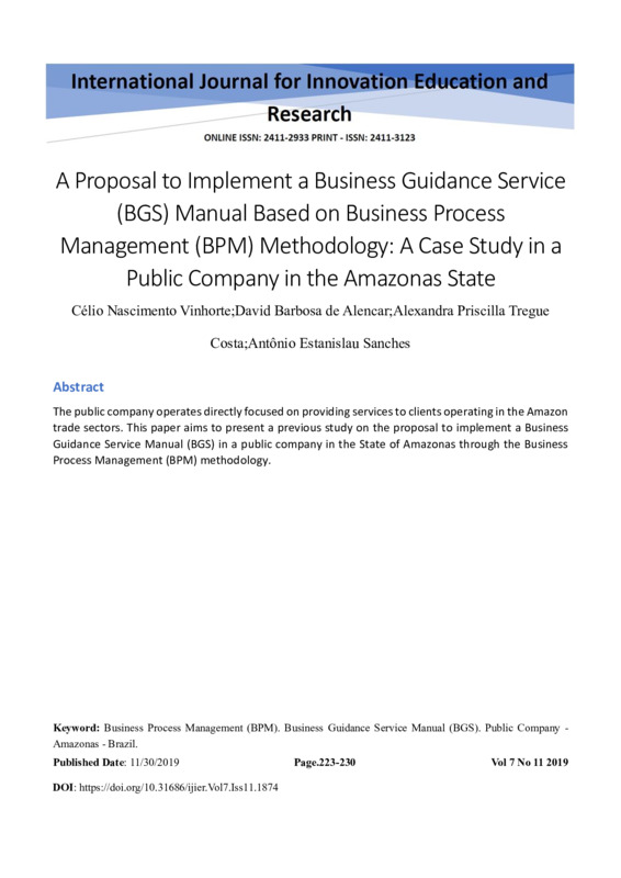 A Proposal to Implement a Business Guidance Service (BGS) Manual Based on Business Process Management (BPM) Methodology: A Case Study in a Public Company in the Amazonas State