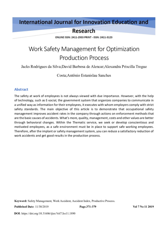 Keyword: Safety Management, Work Accident, Accident Index, Productive Process.