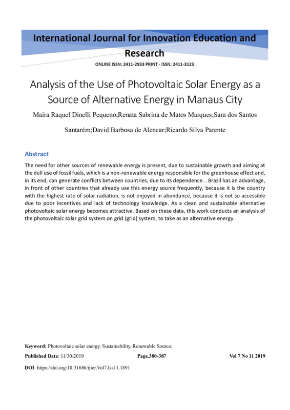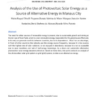 Analysis of the Use of Photovoltaic Solar Energy as a Source of Alternative Energy in Manaus City