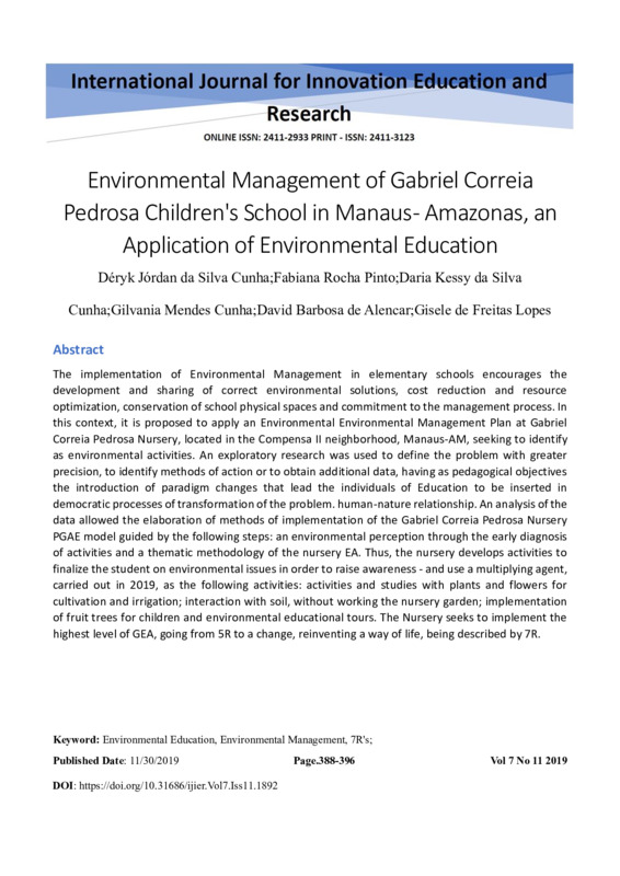 Environmental Management of Gabriel Correia Pedrosa Children's School in Manaus - Amazonas, an Application of Environmental Education