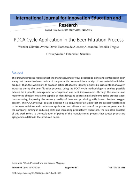 increases during the beer filtration process. Using the PDCA cycle methodology to analyze possible