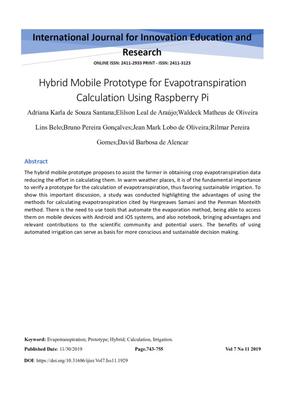 The hybrid mobile prototype proposes to assist the farmer in obtaining crop evapotranspiration data