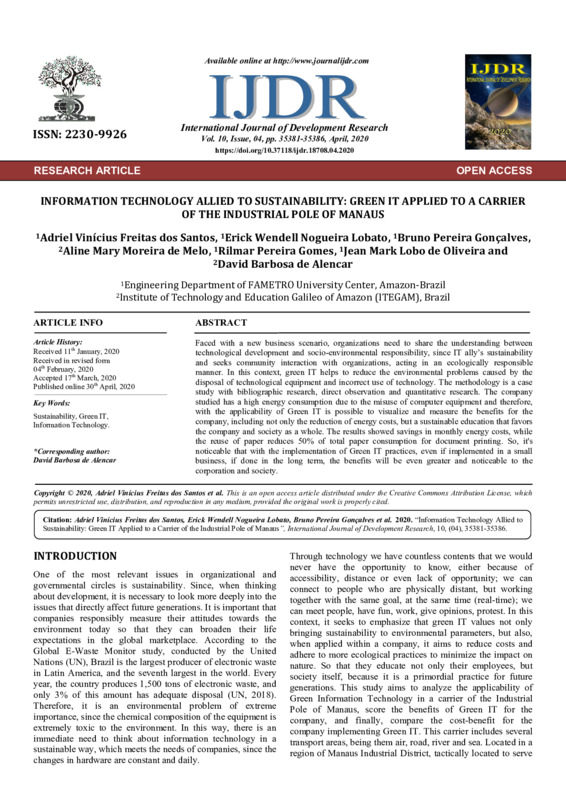 INFORMATION TECHNOLOGY ALLIED TO SUSTAINABILITY: GREEN IT APPLIED TO A CARRIER OF THE INDUSTRIAL POLE OF MANAUS
