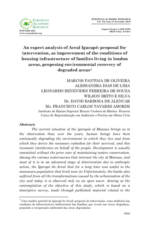 An expert analysis of Areal Igarapé: proposal for intervention, as improvement of the conditions of housing infrastructure of families living in london areas, proposing environmental recovery of degraded areas