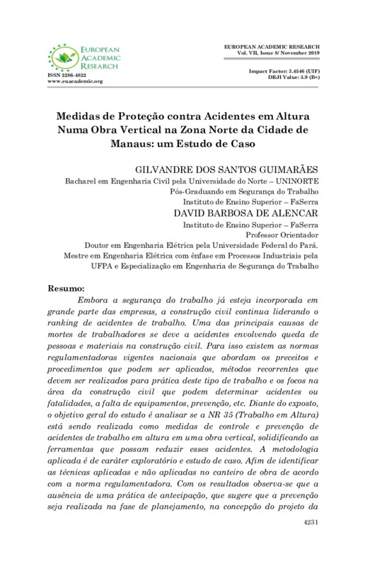 Medidas de Proteção contra Acidentes em Altura Numa Obra Vertical na Zona Norte da Cidade de Manaus: um Estudo de Caso