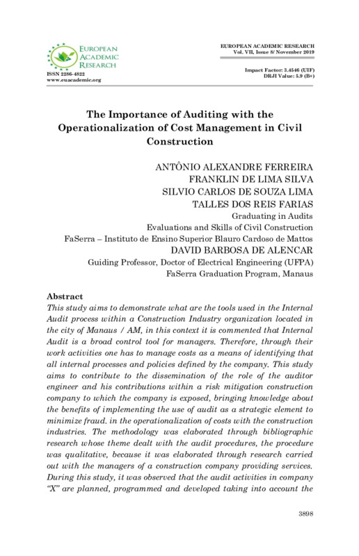 The Importance of Auditing with the Operationalization of Cost Management in Civil Construction