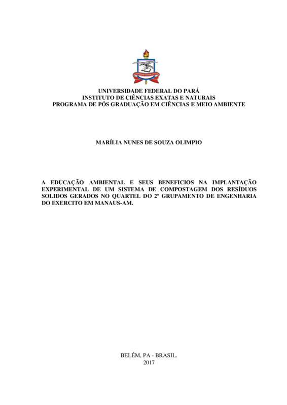 A EDUCAÇÃO AMBIENTAL E SEUS BENEFICIOS NA IMPLANTAÇÃO EXPERIMENTAL DE UM SISTEMA DE COMPOSTAGEM DOS RESÍDUOS SOLIDOS GERADOS NO QUARTEL DO 2º GRUPAMENTO DE ENGENHARIA DO EXERCITO EM MANAUS-AM.