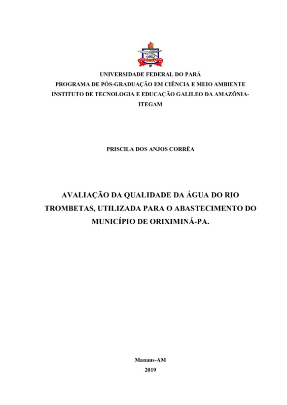Avaliação da Qualidade da água do rio Trombetas, utilizada para o abastecimento do município de Oriximiná