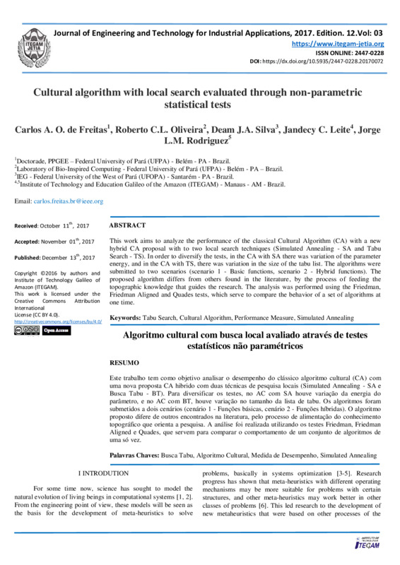 Cultural algorithm with local search evaluated through non-parametric statistical tests