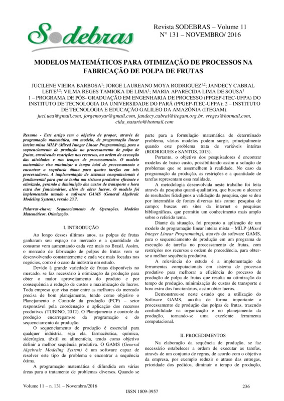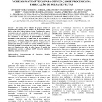 MODELOS MATEMÁTICOS PARA OTIMIZAÇÃO DE PROCESSOS NA FABRICAÇÃO DE POLPA DE FRUTAS