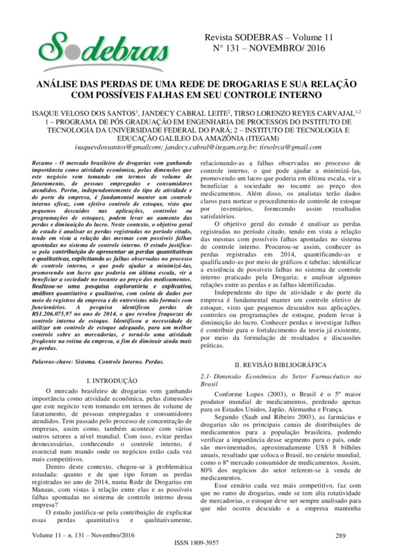 ANÁLISE DAS PERDAS DE UMA REDE DE DROGARIAS E SUA RELAÇÃO COM POSSÍVEIS FALHAS EM SEU CONTROLE INTERNO