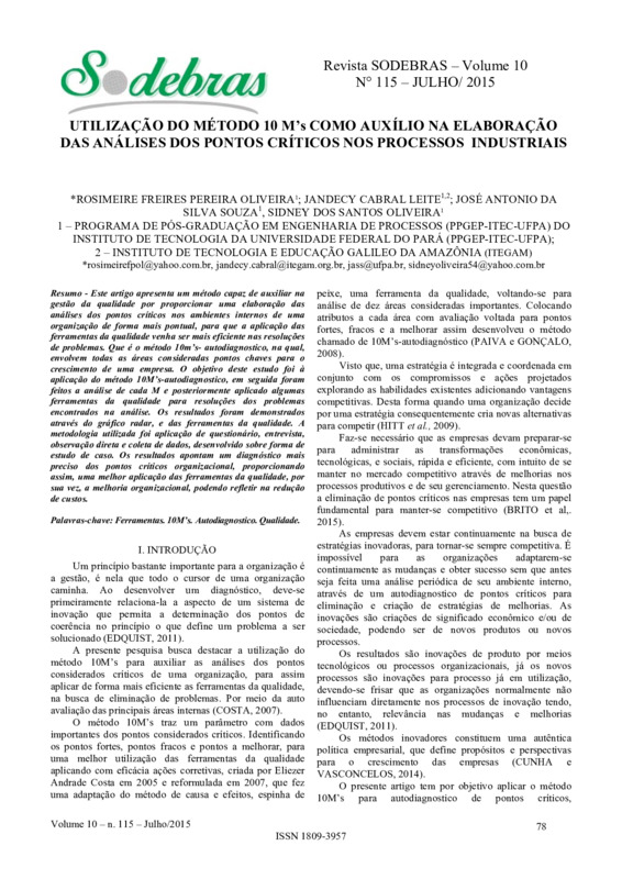 UTILIZAÇÃO DO MÉTODO 10 M’s COMO AUXÍLIO NA ELABORAÇÃO DAS ANÁLISES DOS PONTOS CRÍTICOS NOS PROCESSOS INDUSTRIAIS
