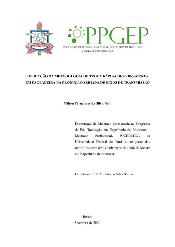 APLICAÇÃO DA METODOLOGIA DE TROCA RÁPIDA DE FERRAMENTA EM FACEADEIRA NA PRODUÇÃO SERIADA DE EIXOS DE TRANSMISSÃO