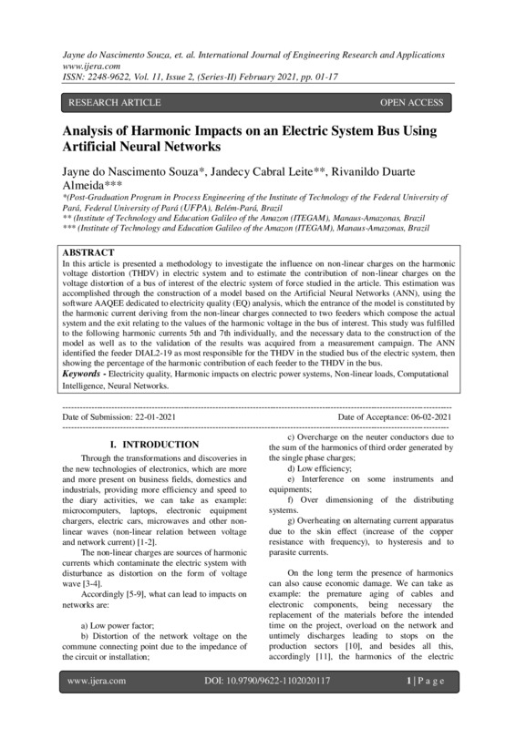 system and the exit relating to the values of the harmonic voltage in the bus of interest. This study was fulfilled