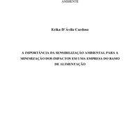 A IMPORTÂNCIA DA SENSIBILIZAÇÃO AMBIENTAL PARA A MINIMIZAÇÃO DOS IMPACTOS EM UMA EMPRESA DO RAMO DE ALIMENTAÇÃO