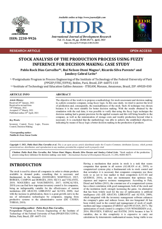 STOCK ANALYSIS OF THE PRODUCTION PROCESS USING FUZZY INFERENCE FOR DECISION MAKING: CASE STUDY
