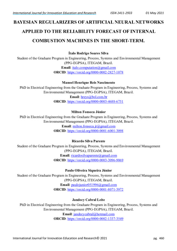 BAYESIAN REGULARIZERS OF ARTIFICIAL NEURAL NETWORKS APPLIED TO THE RELIABILITY FORECAST OF INTERNAL COMBUSTION MACHINES IN THE SHORT-TERM