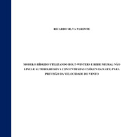 A matriz energética eólica vem aumentando gradativamente nos últimos anos e sua importância para a indústria de energia renovável é cada vez mais atrelada aos benefícios em relação ao meio ambiente, com esta crescente da matriz energética as pesquisas em torno da geração de energia eólica também vem aumentando, sendo uma das vertentes a previsão da velocidade do vento, pois com isso é possível prever a geração de energia eólica e diminuir a taxa de erros em tomadas de decisões na indústria de geração de eletricidade por meio da matriz eólica. Tendo em vista a problemática de tomadas de decisões e imprevisibilidade da velocidade do vento, o presente trabalho tem o objetivo de desenvolver um modelo híbrido para a previsão da velocidade do vento que pode ser utilizada na geração de energia eólica, baseado em Suavização Exponencial de Holt-Winters (HW) e Rede Neural Não Linear AutoRegressiva com Entradas Exógenas (NARX). Nos materiais e métodos foi usado a base de dados do projeto SONDA (Sistema de Organização Nacional de Dados Ambientais) organizado pelo INPE (Instituto Nacional de Pesquisas Espaciais), no qual optou-se por utilizar os dados anemométricos da estação de Brasília – BRB e Petrolina – PTR, onde foram usados dados dos anos de fevereiro de 2005 a março de 2019 da estação de BRB para treinamento, validação e testes, e de janeiro de 2006 a dezembro de 2015 da estação de PTR para simulações do HW, NARX e o modelo proposto. Os resultados obtidos com o modelo híbrido proposto HW-NARX foram comparados com os algoritmos de previsão de series temporais com sazonalidade HW e NARX, no qual o modelo proposto conseguiu atingir resultados de performance e previsibilidade melhores que o HW e o NARX para os horizontes de tempo de ultra-curto prazo, médio prazo e longo prazo, no qual foram utilizados como parâmetros de performance os erros MSE, RMSE e MAPE.